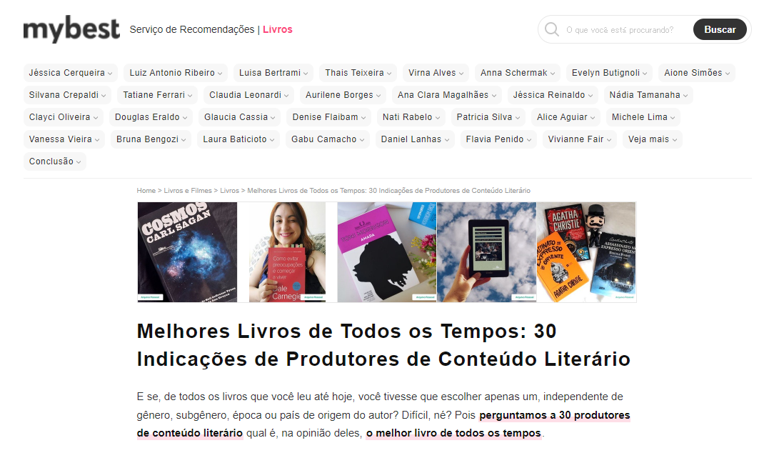 Vocês podem acessar o post Melhores Livros de Todos os Tempos: 30 Indicações de Produtores de Conteúdo Literário através desse link. A ação foi patrocinada pela mybest Brasil.