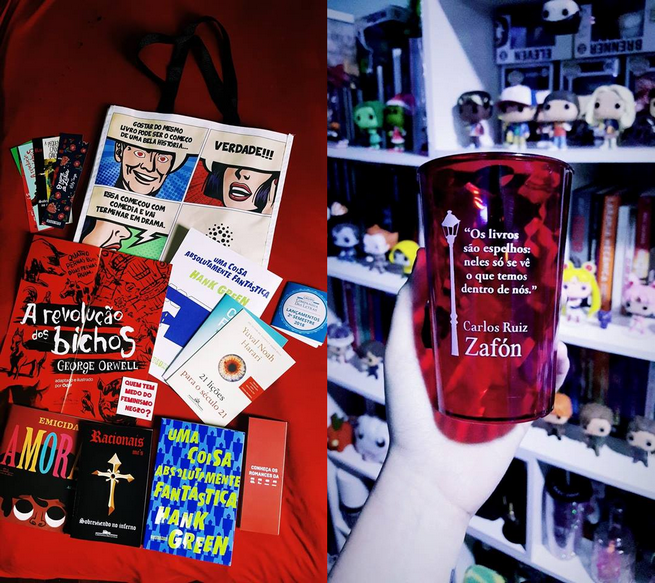 Tudo começou com um agradável café da manhã em que todos puderam conversar e interagir enquanto esperavam pelo auditório ser aberto. Quanto pudemos entrar para as apresentações que viriam, ganhamos uma ecobag da Pólen, cheia de coisas legais dentro. Entre os brindes estavam os livros Uma Coisa Absolutamente Fantástica de Hank Green, Amoras de Emicida e Sobrevivendo no Inferno dos Racionais.