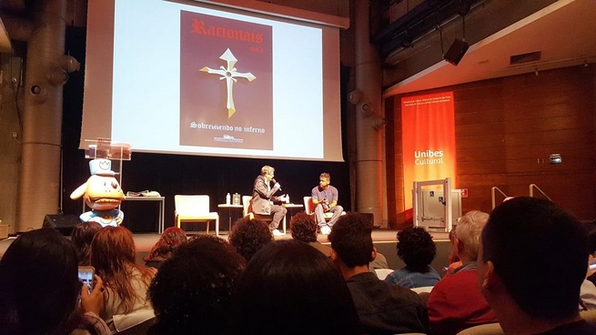 Em seguida Edi Rock subiu ao palco para contar um pouco do processo da construção do livro Sobrevivendo no Inferno. O disco dos Racionais com o mesmo nome, foi certamente um marco brasileiro, um movimento cultural periférico importantíssimo para muitas gerações, que tiveram suas vozes ouvidas, graças à quatro caras que batalharam muito pelos seus. Edi disse que nada mudou da realidade de quando o disco foi feito, mas que eles continuam lutando. Também disse que se sente extremamente feliz por poder ter mais um ‘filho’ como esse, e que quando pudesse iria achar sua professora de estudos sociais, para lhe entregar um dos exemplares do livro.
