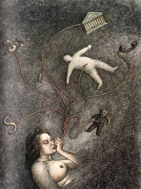 ROLANDO TOPOR (França, 1938-1997). Pintor, ilustrador, poeta, cançonetista, dramaturgo, encenador, cineasta e fotógrafo, artista impossível de catalogar, começou por destacar-se com os desenhos grotescos que publicou na revista satírica Hara-Kiri. Vencedor do Grand Prix de L’Humour Noir em 1961, bebeu dos surrealistas e respondeu-lhes com o movimento Pânico, que fundou com Fernando Arrabal e Alejandro Jodorowsky, entre outros. Em sua obra, Topor nos leva para um mundo do avesso, e a crueldade animalesca, o erotismo, a escatologia e a tétrica ironia das suas obras valeram-lhe o desprezo de críticos, vários projetos ruinosos e ameaças de morte quotidianas. Graças a uma sempre amável sugestão de João Antônio Buhrer, Rolando Topor agora está conosco como artista convidado desta edição da Agulha Revista de Cultura.