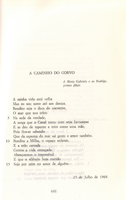 O poema desta semana pertence a Sapateia Açoriana (1976). A imagem foi obtida a partir do Volume II de Obras Completas (1989), organizado por Fátima Freitas Morna e publicado pela Imprensa Nacional.