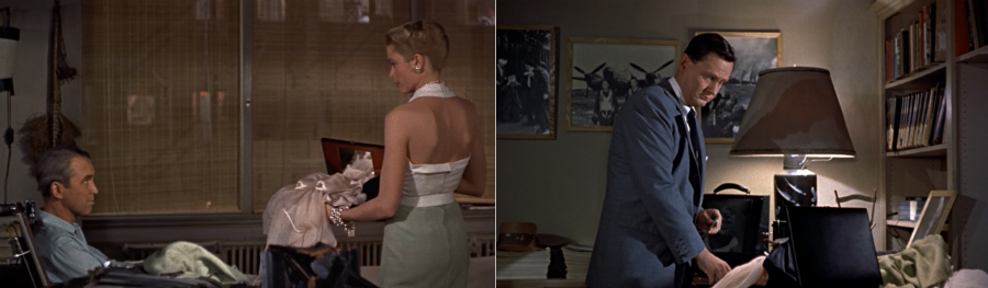 Uma das coisas de que gostei muito no filme foi o duplo significado daquela aliança. Grace Kelly quer casar-se mas James Stewart não vê as coisas desse modo. Ela invade o apartamento do assassino procurando evidências e encontra a aliança. Coloca-a no dedo e acena com a mão por trás das costas de modo que James Stewart, observando tudo do outro lado do quintal de binóculos, possa ver. Para Grace Kelly, aquele anel é uma dupla vitória; não somente é a evidência que estava procurando mas, quem sabe, pode inspirar a proposta de casamento por parte de Stewart. Afinal, ela já tem o anel. [23]