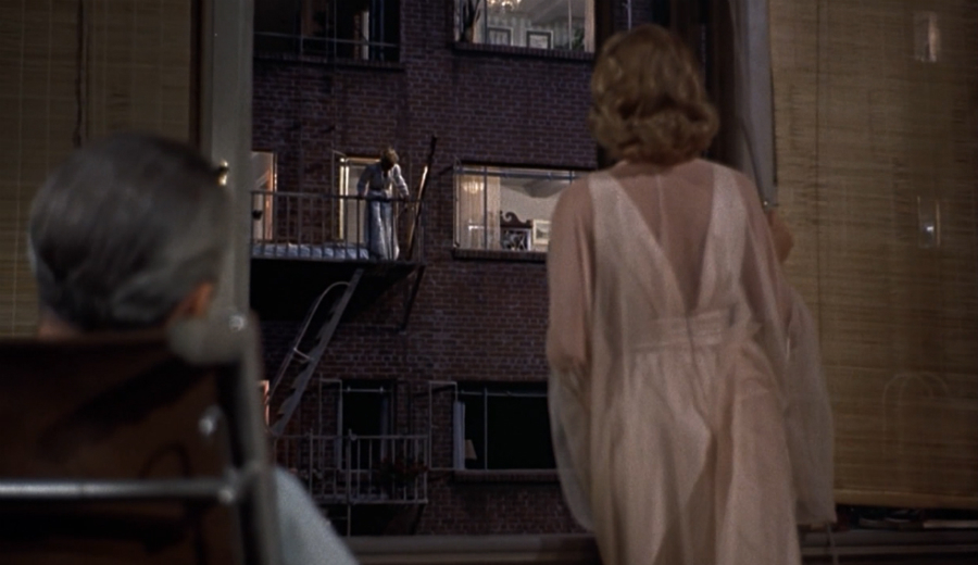 De início, Lisa está menos interessada que Jeff em espiar os vizinhos e em adotar uma relação transcendente e controladora com os textos de suas vidas; antes, ela se relaciona às "personagens" através de empatia e identificação. Logo no início do filme, Jeff aponta jocosamente a semelhança entre o apartamento dela e o de Miss Torso, que é vista no momento a entreter uma porção de homens. Jeff diz, "ela é como uma abelha-rainha rodeada de zangões", ao que Lisa responde, "Eu diria que ela está fazendo o mais difícil dos trabalhos das mulheres - lidar com lobos". Miss Torso acompanha um dos homens à sacada, onde beija-o brevemente e tenta voltar para dentro, enquanto este tenta impedi-la. Jeff diz, "Ela certamente escolheu o mais bem-apessoado", enquanto Lisa nega esta noção dizendo, "Ela não está apaixonada por ele - ou por nenhum deles, para dizer a verdade." Quando Jeff pergunta como pode ter tanta certeza, ela replica, "Você disse que parecia meu apartamento, não foi?" Depois, o mesmo homem se impõe a Miss Torso, que se vê forçada a repeli-lo e, mais tarde - no fim do filme - o verdadeiro amor de Miss Torso, Stanley, vem visitá-la. Assim, malgrado a ênfase dos críticos no ponto de vista limitado do filme, Lisa e Jeff têm interpretações muito diferentes a respeito do desejo da mulher nesta cena repleta de potencial violento e erótico, e é a interpretação de Lisa, obtida através da identificação, que é por fim corroborada.