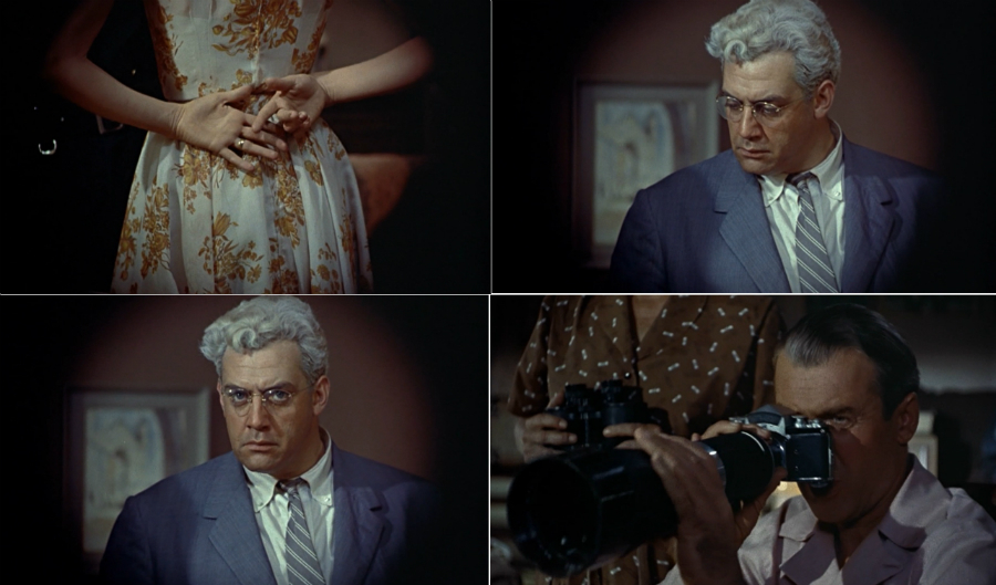 Neste momento do filme, a câmera traça um trajeto triangular do olhar de Jeff no anel para Thorwald, que vê o anel e, logo a seguir, descobre Jeff, devolvendo o olhar pela primeira vez. Assim Thorwald passa a completar o processo de "feminização", atravessando o limiar em direção ao apartamento de Jeff e colocando-o no papel antes interpretado pela Sra. Thorvald e depois por Lisa - aquele de vítima da violência masculina. As técnicas de "distanciamento" de Jeff, é claro, não têm mais utilidade, e as lâmpadas de flash conseguem apenas retardar Thorwald por alguns instantes. Como Lisa, Jeff finalmente passa a ser um participante da história, embora sua identificação com a personagem feminina seja involuntária, imposta por Thorwald, cuja visita é como o retorno do reprimido.
