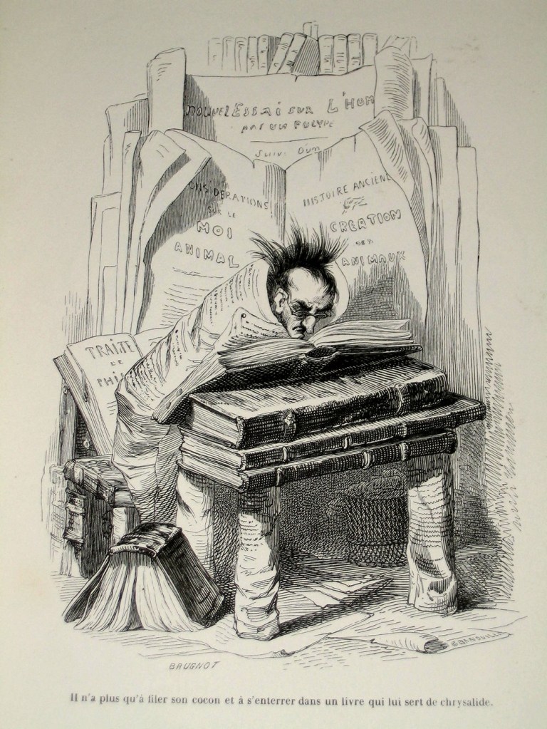 Júpiter, deus máximo da Antiguidade, diz em A tentação de Santo Antônio: ‘…por toda parte triunfam a estupidez das multidões, a mediocridade do indivíduo”. Estupidez, mediocridade, palavras-chaves em Flaubert. O amor de Giácomo pelos livros é, assim como o de Emma Bovary e de Bouvard & Pécuchet, estúpido e medíocre (e, em última instância, sem sentido), apesar da capa passional: “Oh! ele era feliz, esse homem, feliz em meio a toda essa ciência cujo alcance moral e valor literário mal penetrava… amava um livro porque era um livro: amava seu cheiro, sua forma, seu título…Mal sabia ler”.