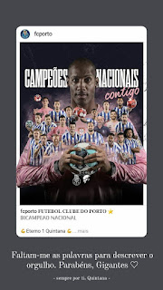 A minha essência de adepta faz-me reconhecer a poesia inerente à conquista de um campeonato, porque são emoções fortes que não se explicam. Ainda assim, custou-me que essa festa não tenha sido azul e branca - e se há algo que aprendi com o Porto foi a acreditar até ao final. Por outro lado, foi de coração a transbordar de orgulho que vi a nossa equipa de Andebol a conquistar o bicampeonato. E foi de lágrimas nos olhos que celebrei esse momento: não só pelo que representa desportivamente, mas principalmente por ser a homenagem perfeita a um dos rostos que melhor representou esta casa. Foi por ti, Quintana. Obrigada por seres a estrela que orienta a nossa mística.