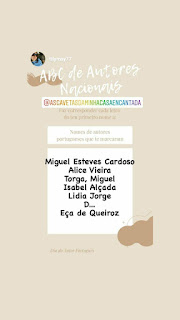 Quando pensei na semana temática de homenagem aos autores nacionais, lembrei-me que talvez fosse interessante partilhar os temas que a constituiriam, permitindo que mais pessoas participassem, se assim o entendessem. E foi com uma enorme felicidade que li as participações da Marisa, da Matilde, da Sofia e da Carolina [Uma Família de 3].