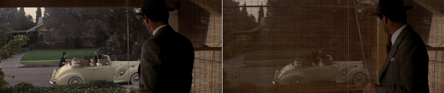 Por trás de tudo isso, melhor seria não procurar muitas intenções “críticas”. Pois essa representação da América (angústia e miséria moral) voltada ao passado é acompanhada de uma recusa absoluta e perfeitamente conciliada de olhar além: aversão, talvez, mas certamente também fascinação por Chinatown, pelo cenário falso, pela violência primitiva, pela morte. Chinatown é também Hollywood, uma Hollywood crepuscular de luzes quase apagadas, mas da qual não se pode decidir sair. E Gittes, o duplo do espectador, voyeur impotente contando os pontos de uma partida que acontece sem ele (porque ele também não tem para onde olhar).