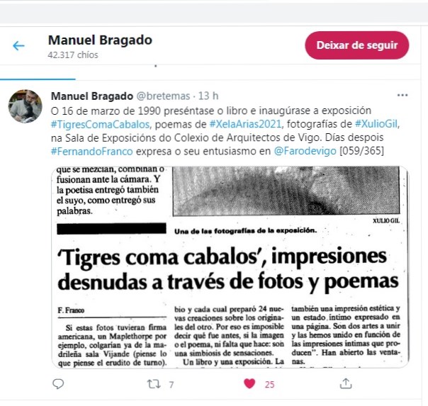 Ao fío do chío que hoxe Manuel Bragado incorporou na serie que deu en organizar baixo o cancelo #XelaArias2021: un recurso de extraordinaria utilidade didáctica e, ao meu ver, absolutamente referencial, atrévome a deixar aquí unha pequena achega.