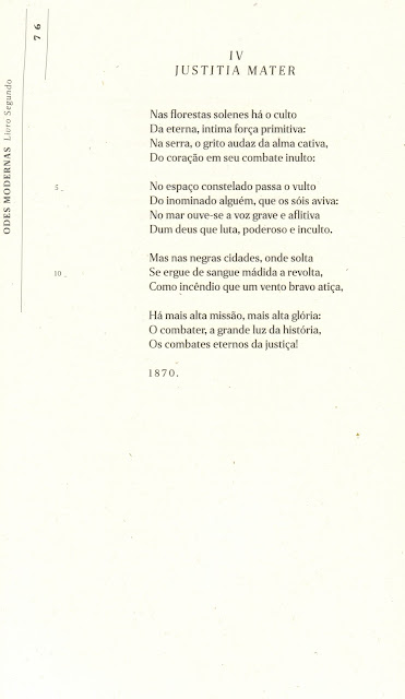 O poema desta semana pertence a Odes Modernas (1875). A imagem foi obtida a partir de Poesia I, edição crítica de Luiz Fagundes Duarte para a colecção de Obras Clássicas da Literatura Portuguesa, publicada em 2016 pela Direcção-Geral do Livro, dos Arquivos e das Bibliotecas.