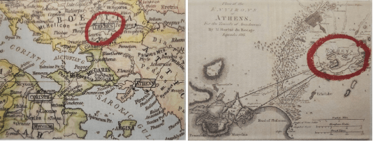 Mapas da Grécia Antiga utilizados no início e fim de H of H Playbook. Na primeira foto, a cidade de Tebas aparece em destaque. Na segunda foto, reproduzida ao final do livro, Atenas é destacada.