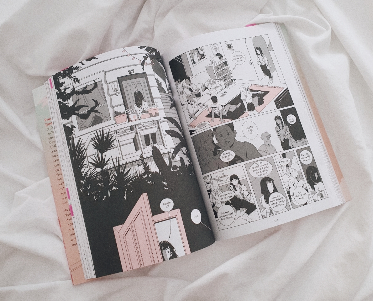 Se alguém me perguntasse o primeiro motivo para ler o livro, certamente são as lições de relacionamento que aparecem ao redor da história, que nos esquecemos quando crescemos ou estamos apaixonados, são muito boas e entregues de um jeito leve. Segundo motivo seria a diagramação moderna, com telas de celulares e mensagens de texto, que dá um toque muito jovial à HQ. Em terceiro lugar, estaria a nada menos incrível ilustração que se une ao enredo perfeitamente, com sua paleta de preto branco e rosa bebê. Por fim, a leveza da história e a forma como os personagens conseguem se tornar amigos imaginários logo nas primeiras páginas é surreal.